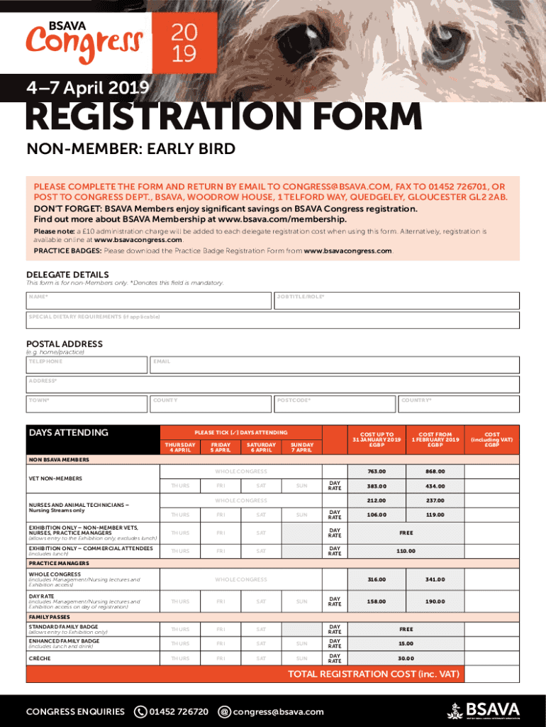 PLEASE COMPLETE THE FORM AND RETURN BY EMAIL TO CONGRESS@BSAVA.COM, FAX TO 01452 726701, OR