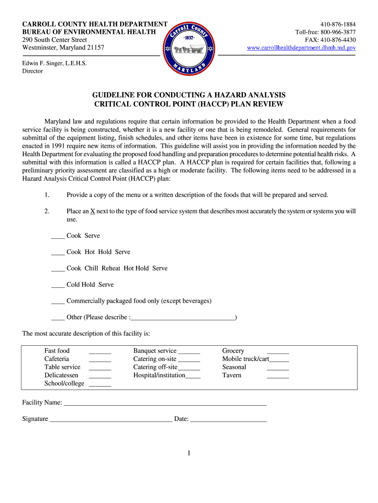 CARROLL COUNTY HEALTH DEPARTMENT BUREAU OF ENVIRONMENTAL HEALTH 290 South Center Street Westminster, Maryland 21157 410-876-1884 Toll-free: 800-966-3877 FAX: 410-876-4430 www.carrollhealthdepartment.dhmh.md.gov