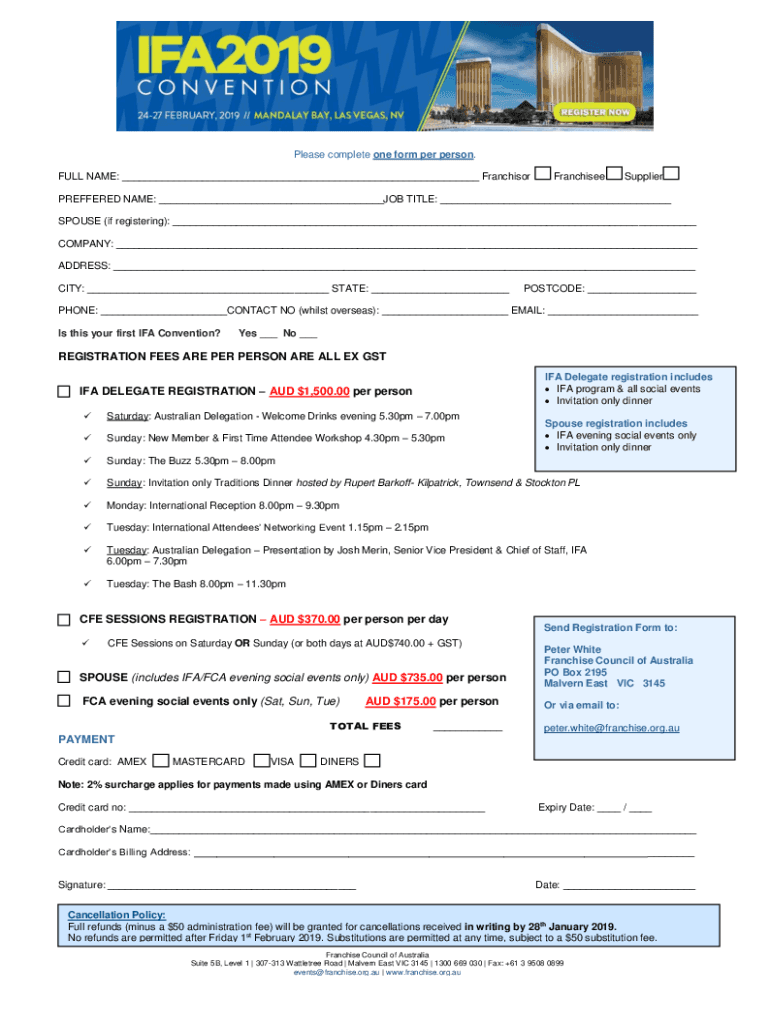 Get the free REGISTRATION FEES ARE PER PERSON IFA DELEGATE REGISTRATION ...