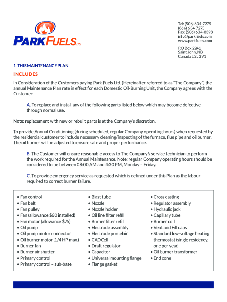 Canada E2L 3V11. THIS MAINTENANCE PLAIN CLU D E S
