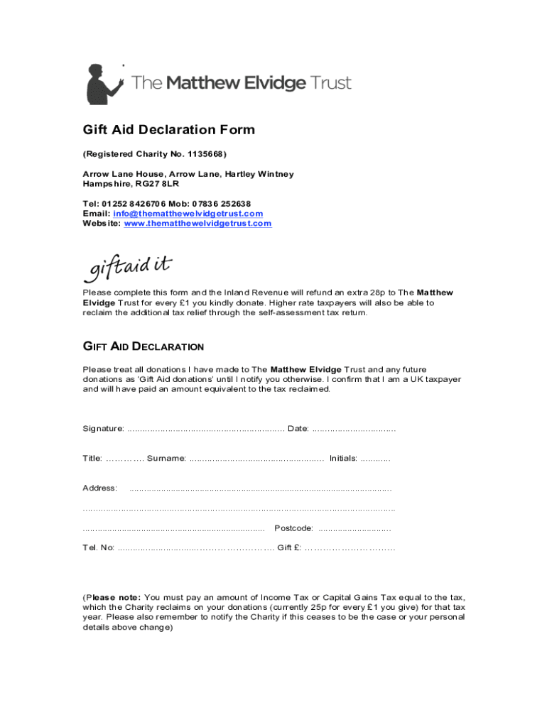 Anyone who donates to a UK charity or organization and is a UK taxpayer can benefit from filling out a gift aid declaration form.