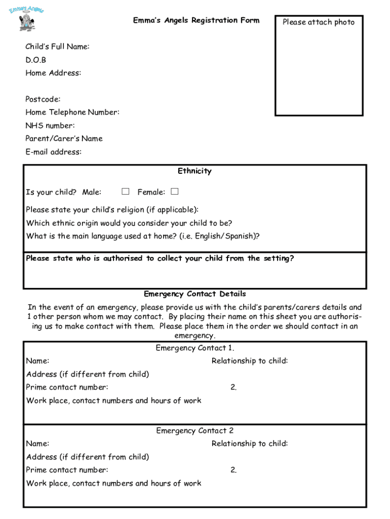 Get the free Emma s Angels Registration Form Child s Full Name