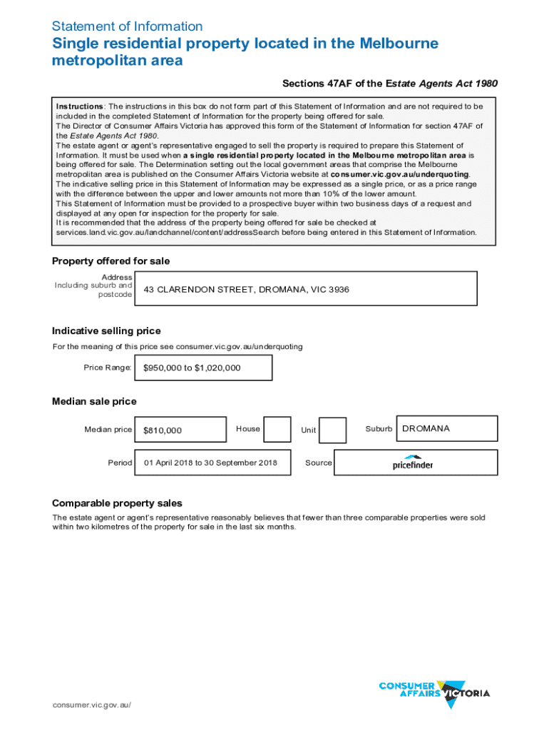 Please note that this is a general guide, and you may need to refer to any specific instructions or requirements provided with the statementofinformation form for 43 Clarendon Street Dromana.