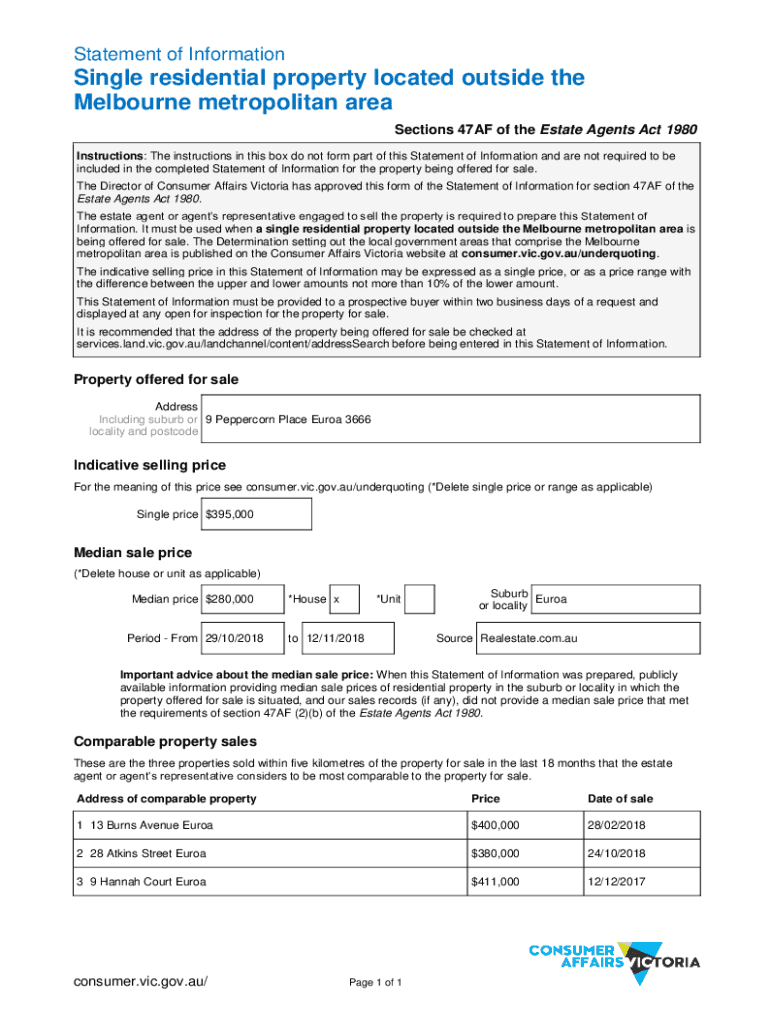Statement of InformationSingle residential property located outside the