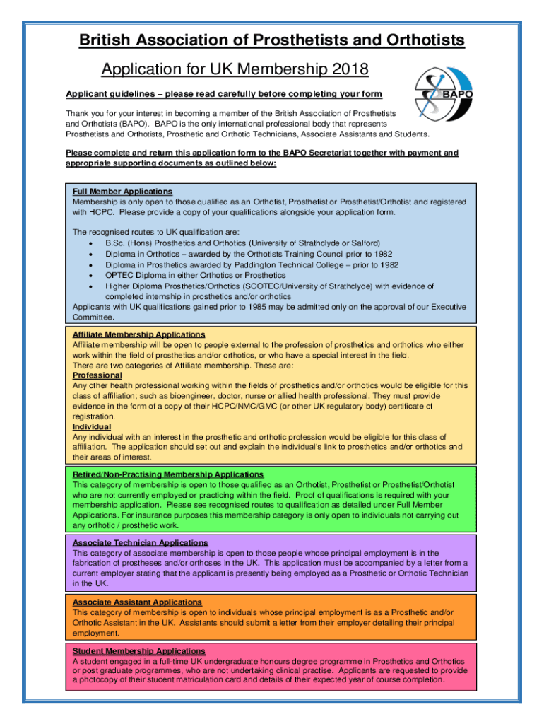 British Association of Prosthetics and Orthotics Application for UK Membership 2018 Applicant guidelines please read carefully before completing your form Thank you for your interest in becoming a
