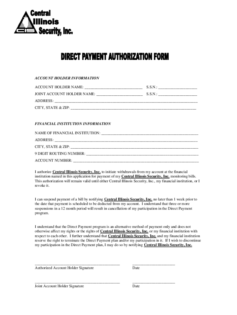 ACCOUNT HOLDER INFORMATION ACCOUNT HOLDER NAME: S.S.N.: JOINT ACCOUNT HOLDER NAME: S.S.N.: ADDRESS: CITY, STATE & ZIP: FINANCIAL INSTITUTION INFORMATION NAME OF FINANCIAL INSTITUTION: ADDRESS: CITY,