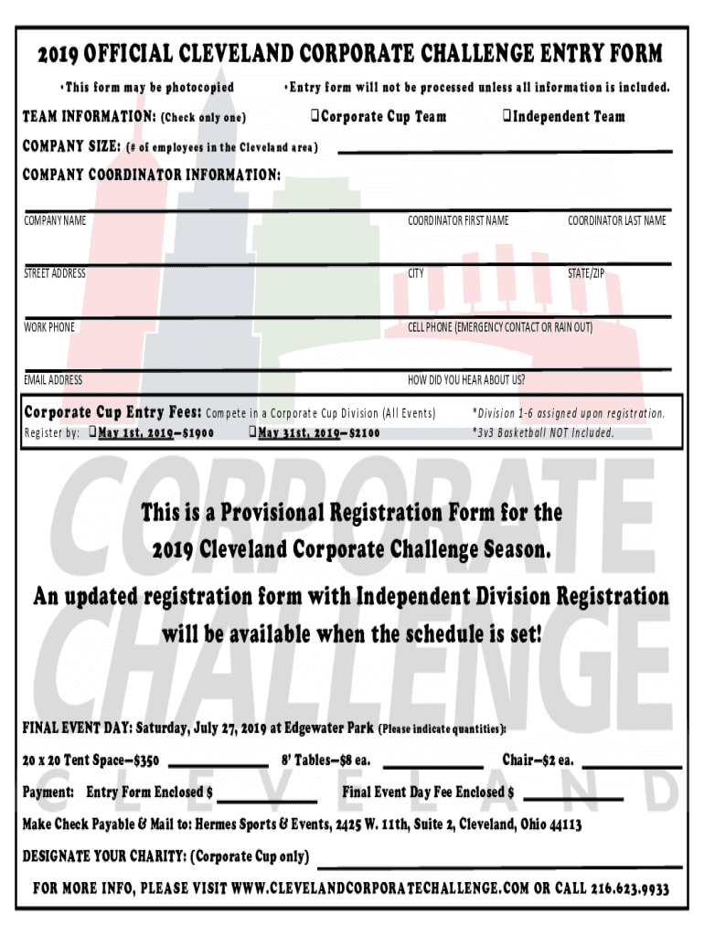 2019 OFFICIAL CLEVELAND CORPORATE CHALLENGE ENTRY From