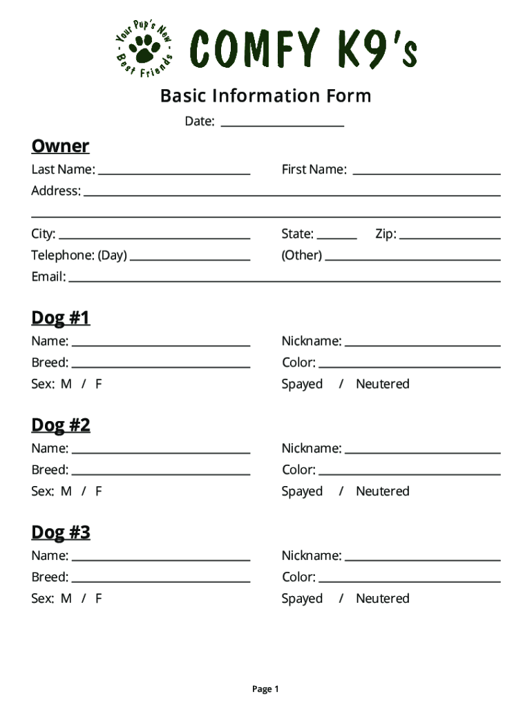 Comfy k9s Information Form is not the form you're looking for?Search for another form here.