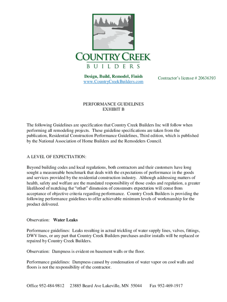 www.CountryCreekBuilders.comContractors license # 20636393PERFORMANCE GUIDELINES