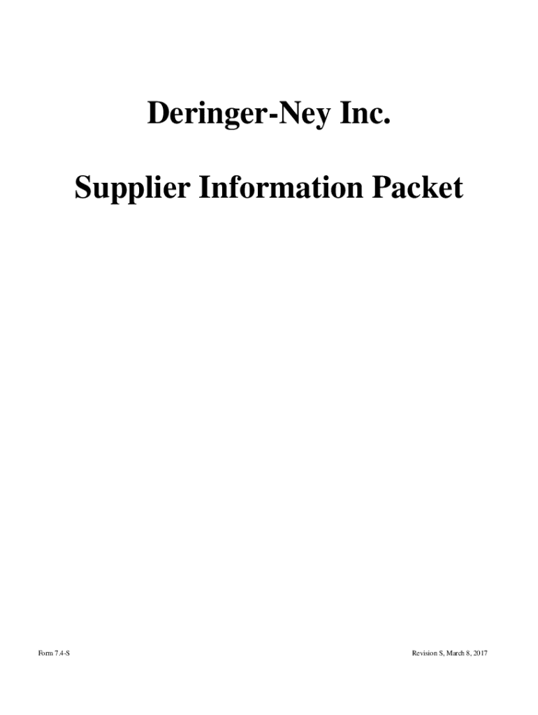 Supplier Information PacketForm 7.4SRevision S, March 8, 2017DeringerNey Supplier Information Packet