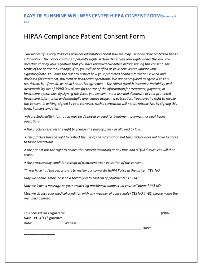 RAYS OF SUNSHINE WELLNESS CENTER HIPPO CONSENT FORM[Document