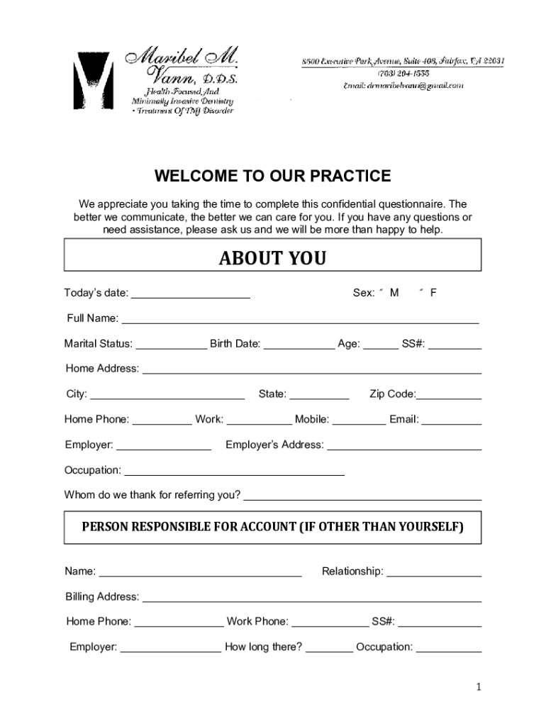 WELCOME TO OUR PRACTICE We appreciate you taking the time to complete this confidential questionnaire. The better we communicate, the better we can care for you. If you have any questions or need