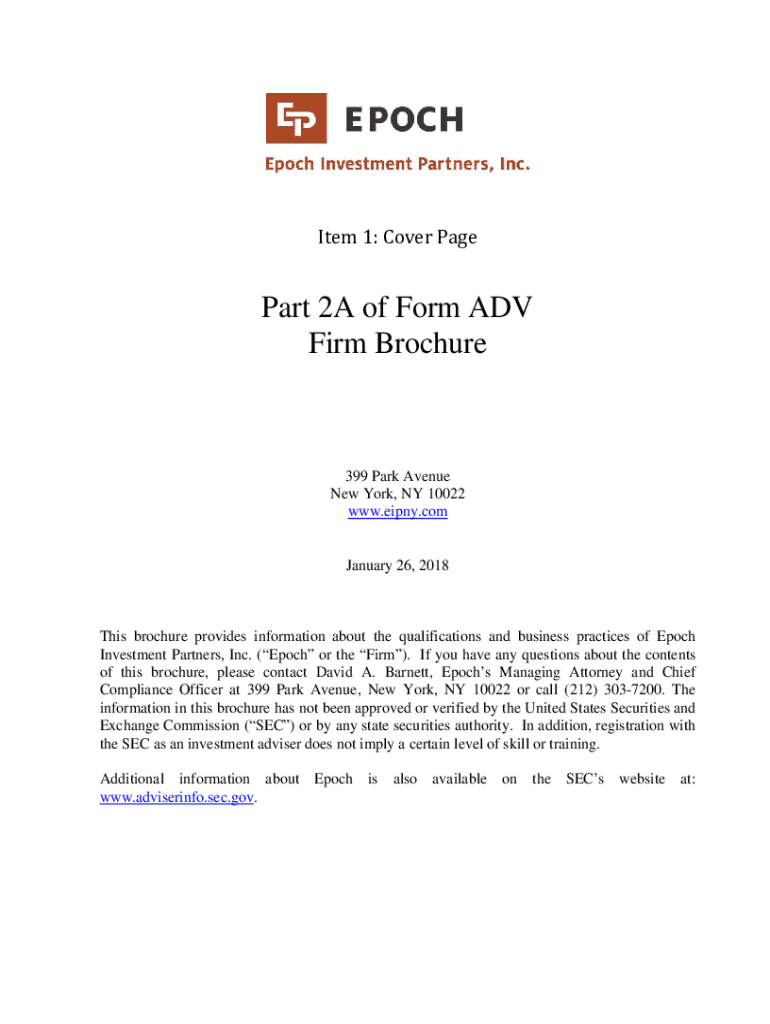 Get the free PDF Part 2A of Form ADV Firm Brochure - Epoch Investment Partners