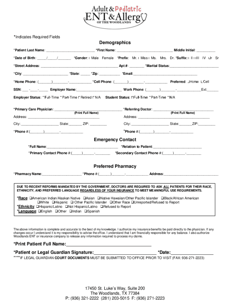 Get the free New Patient Registration Forms (Adult) - Adult & Pediatric ENT ...