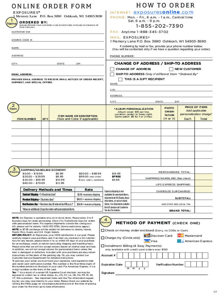 HOW TO BORDERLINE ORDER FORM N TER N E T: exposuresonline.com P H O N E : Mon. Fri., 6 a.m. 1 a.m., Central time Sat. 6 a.m. 9 p.m.EX PO SUR E S 11 Memory Lane P.O. Box 3690 Oshkosh, WI 549033690RDERED