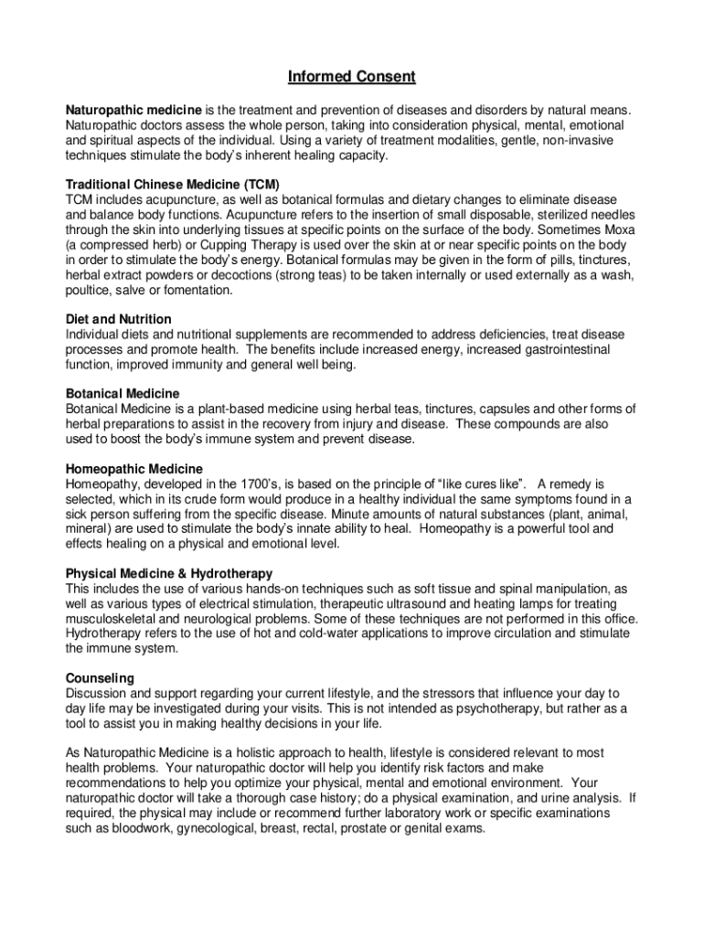 This form allows the naturopathic doctor to gather essential information about the patient's medical history, current symptoms, lifestyle, and other pertinent details.