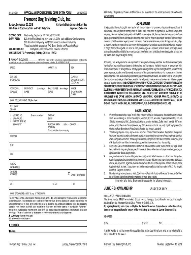 2018214001OFFICIAL AMERICAN KENNEL CLUB ENTRY FORM2018214002FremontDogTrainingClub,Inc.