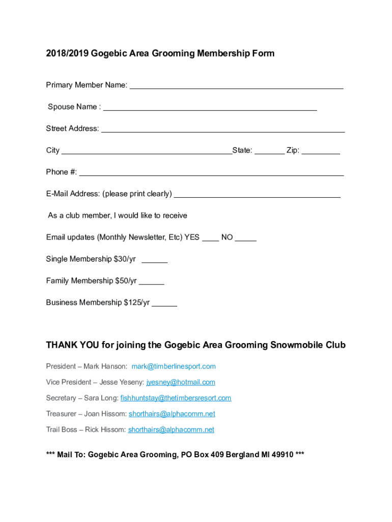 Get the free T H A N K Y O U f o r j o i n i n g t ... - Gogebic Area Grooming