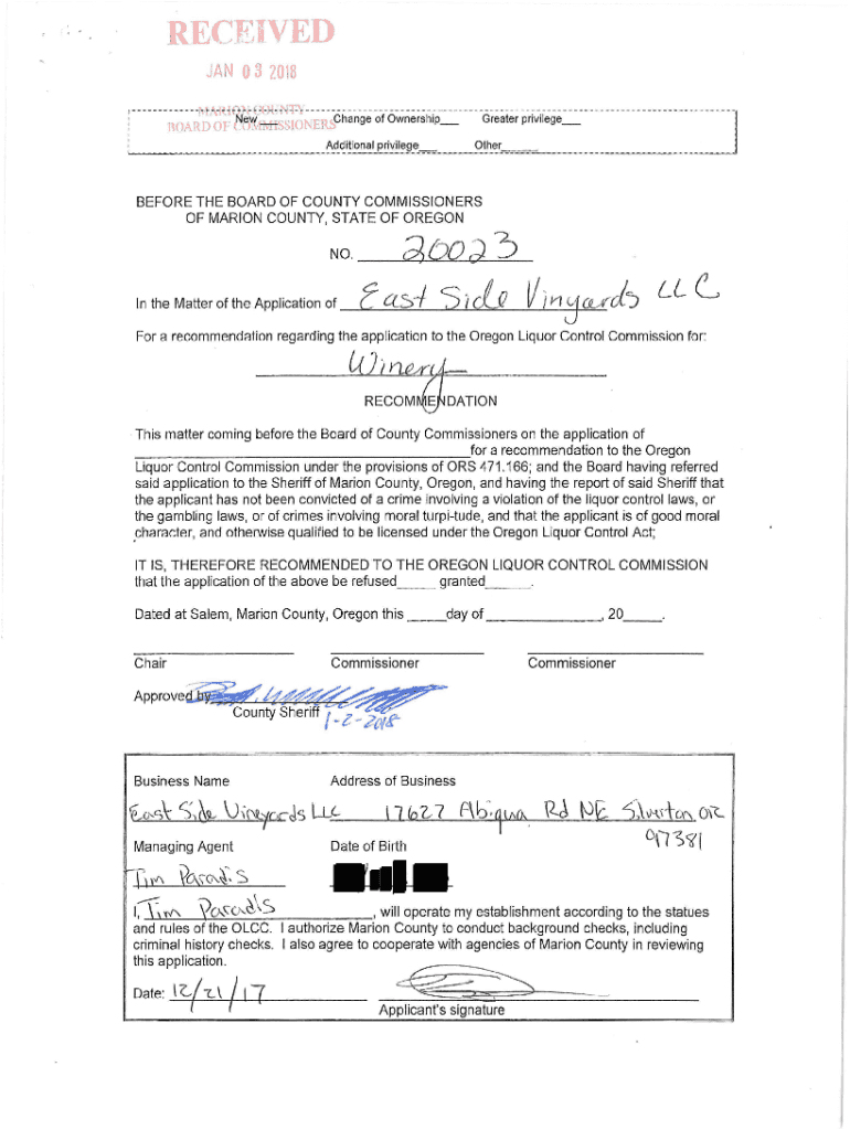 JAN 0 3 2018 '. J Lr J 1i. BOA 0 JO “J, ;,11 Slots 'Interchange of Ownership Additional privilege Greater privilege Other BEFORE THE BOARD OF COUNTY COMMISSIONERS OF MARION COUNTY, STATE OF OREGON