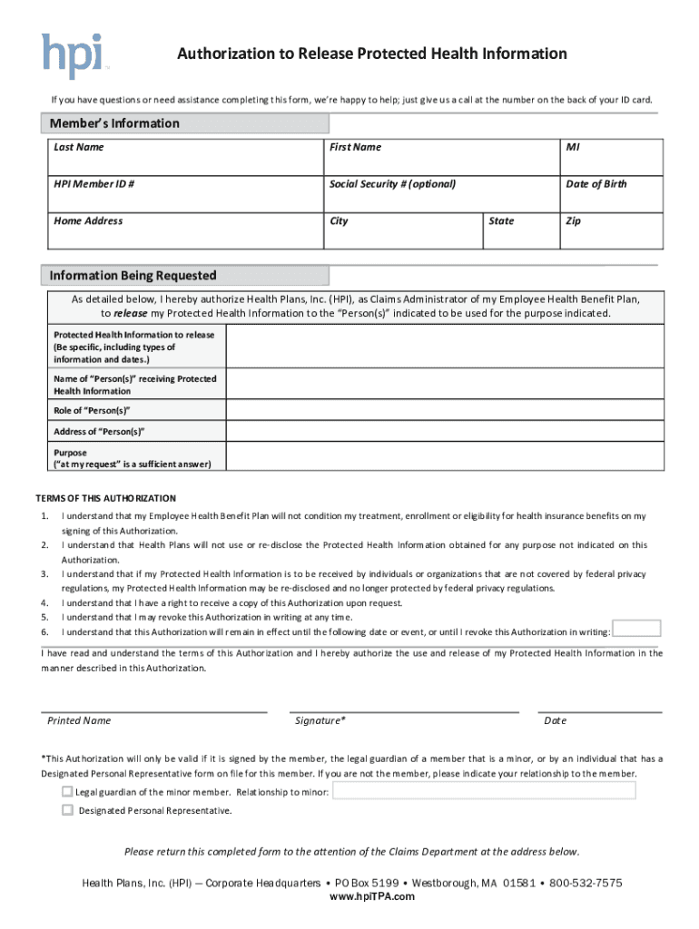The purpose of the HIPAA release form is to give patients control over their personal health information and to ensure that their information is shared only with authorized individuals or organizations.