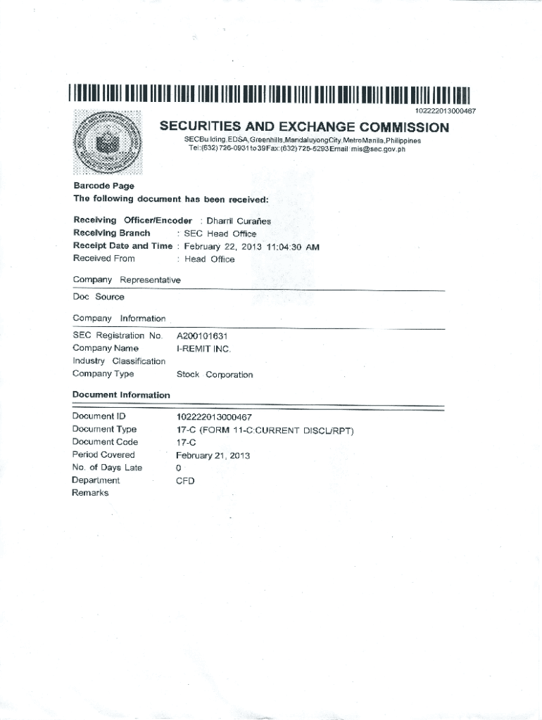 COVER SHEET 2 0 0 1 0 1 6 3 1 SEC Registration Number R EMI T, I NC .AND SUB S I D I AR I E S(Companies Full Name)2 6 / FD in u EO r t, s c o v e r y i g an SC e n t r EC e n t e r,2 5P an is GA D