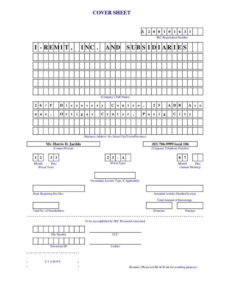 COVER SHEET 2 0 0 1 0 1 6 3 1 SEC Registration Number R EMI T, I NC .AND SUB S I D I AR I E S(Companies Full Name)2 6 / FD in u EO r t, s c o v e r y i g an SC e n t r EC e n t e r,2 5P an is GA D