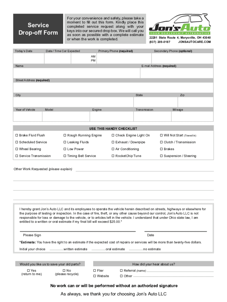 How to fill out pdf drop-off service form?