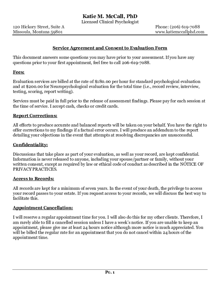 www.katiemccallphd.comService Agreement and Consent to Evaluation Form