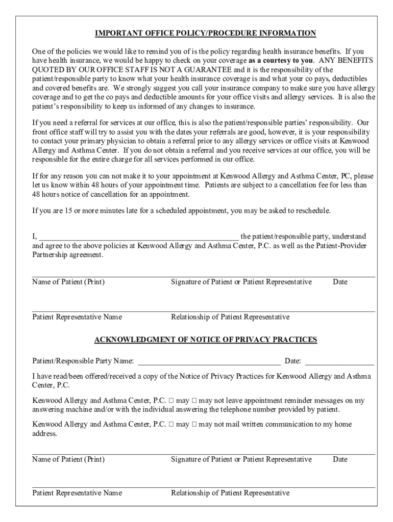 IMPORTANT OFFICE POLICY/PROCEDURE INFORMATION