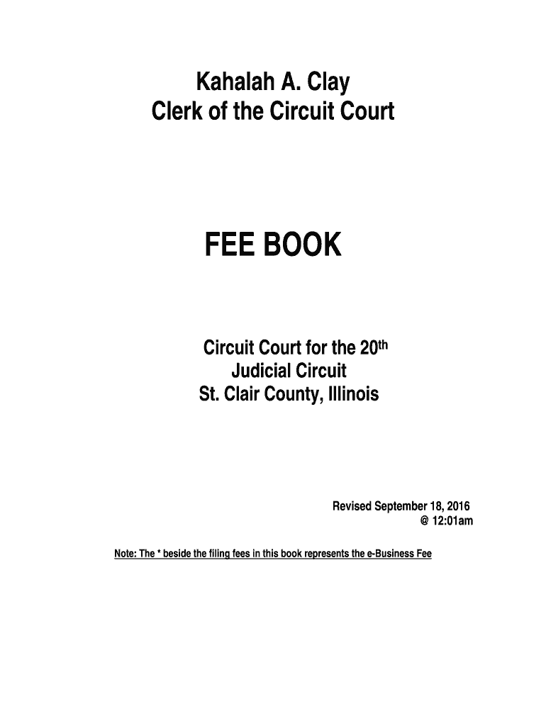 Kabbalah A. Clay Clerk of the Circuit Courted BOOK Circuit Court for the 20th Judicial Circuit St. Clair County, IllinoisRevised September 18, 2016 12:01am Note: The * beside the filing fees in this