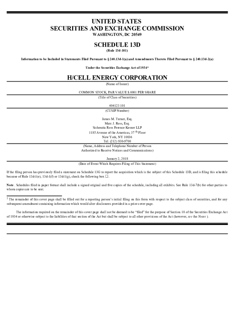 Get the free H/CELL ENERGY CORP. FORM SC 13D (Statement of Beneficial Ownership) Filed 01/04/18