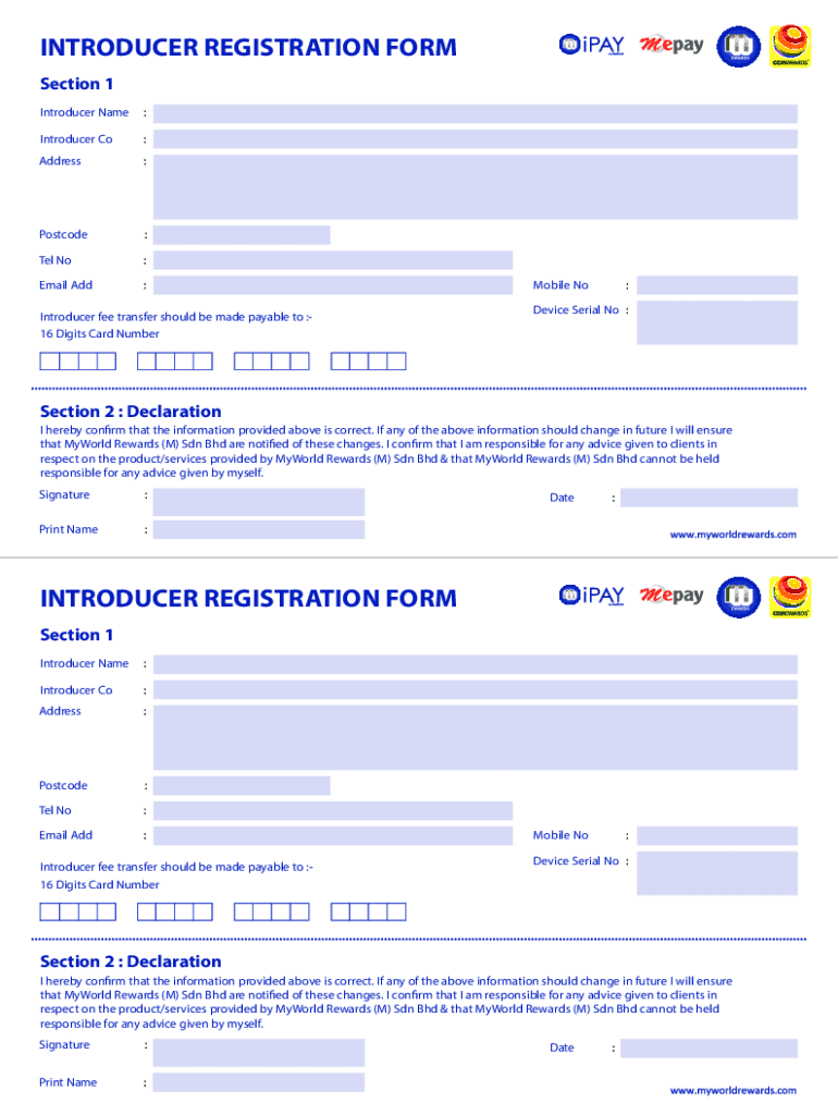 INTRODUCER REGISTRATION FORM