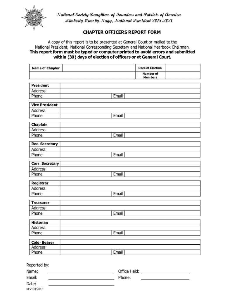 Information that must be reported may include membership details, chapter activities, financial transactions, programs conducted, and any relevant historical preservation efforts.