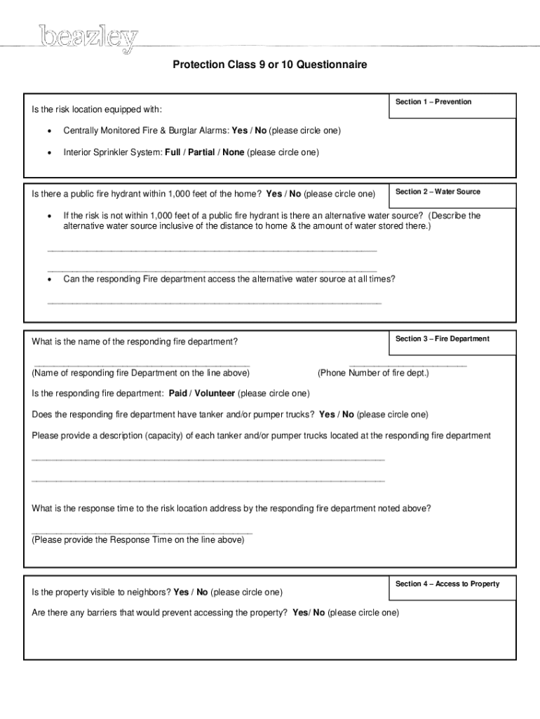 Get the free Protection Class 9 or 10 Questionnaire