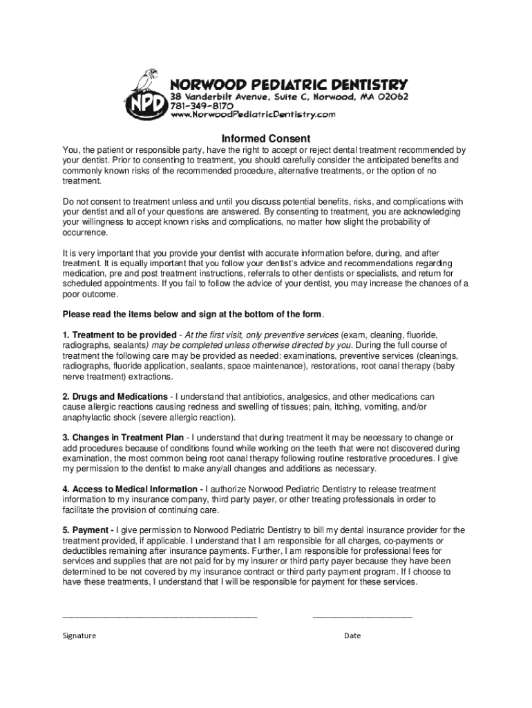Get the free PDF General Dentistry Informed Consent - Norfolk Family & Pediatric ...
