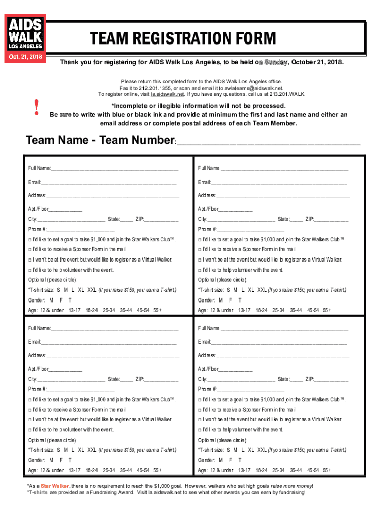 Thank you for registering for AIDS Walk Los Angeles, to be held on Sunday, October 21, 2018.! Please return this completed form to the AIDS
