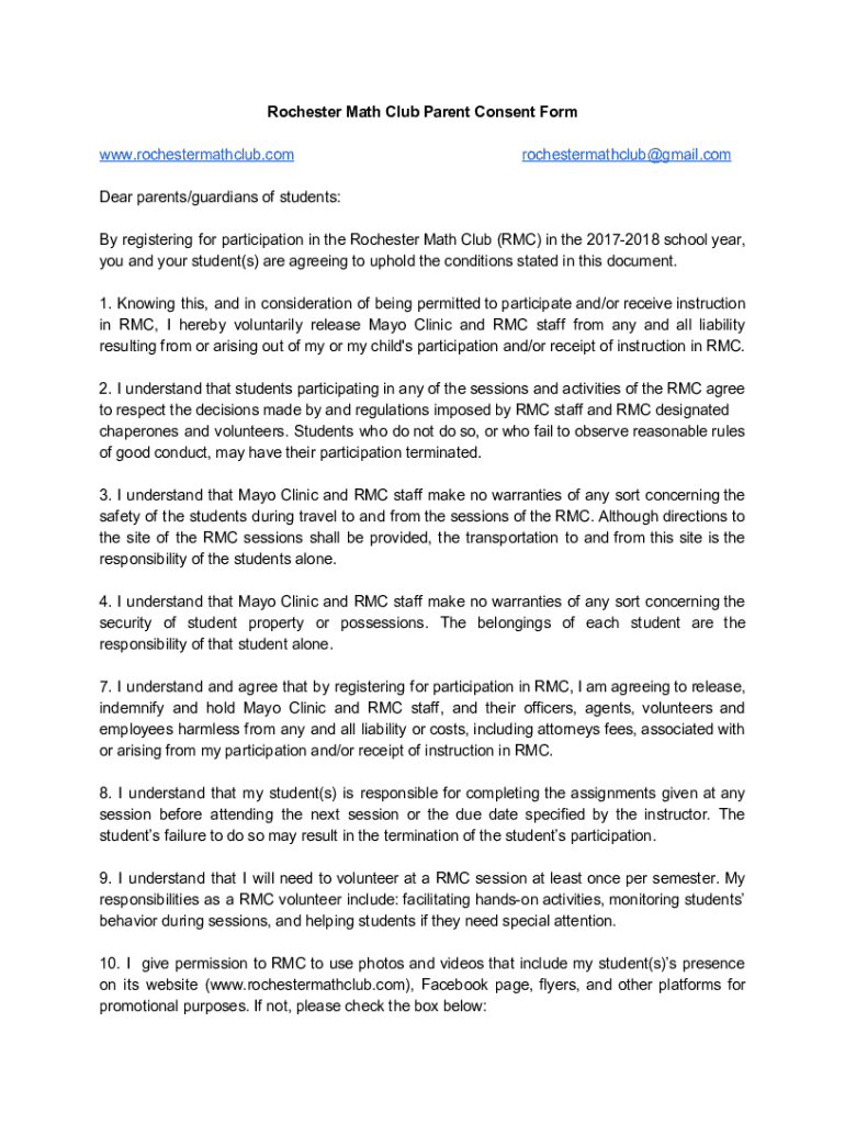 Get the free Rochester Math Club Parent Consent Form www ...