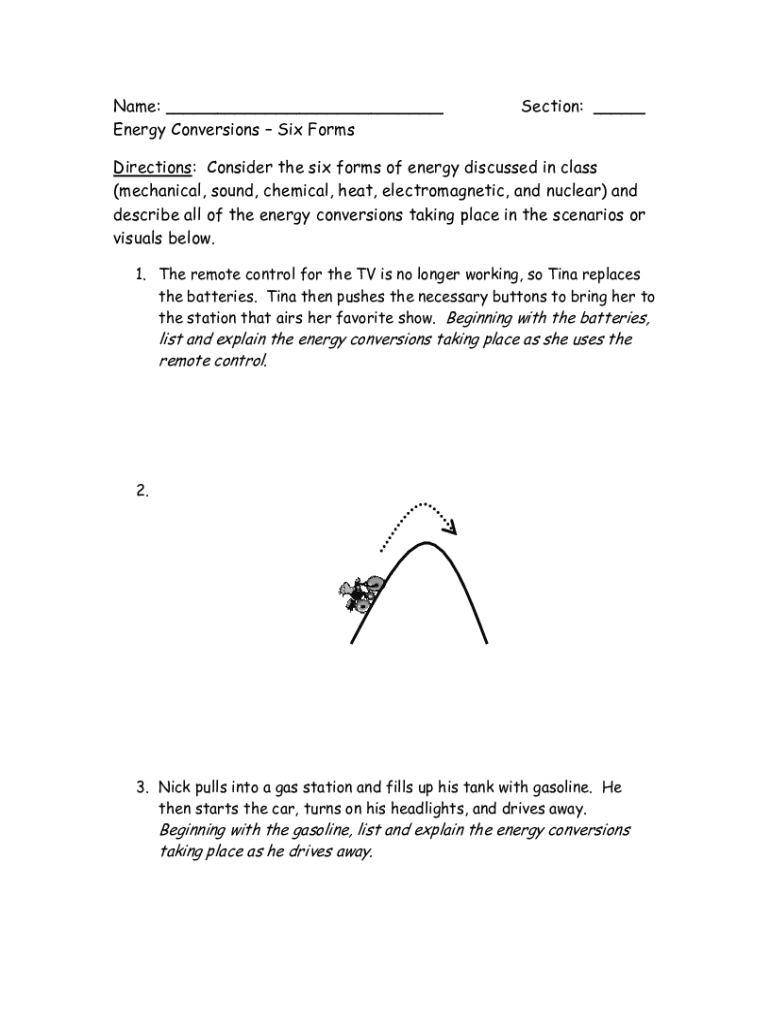 Get the free Name: Section: Energy ConversionsSix Forms Directions ...