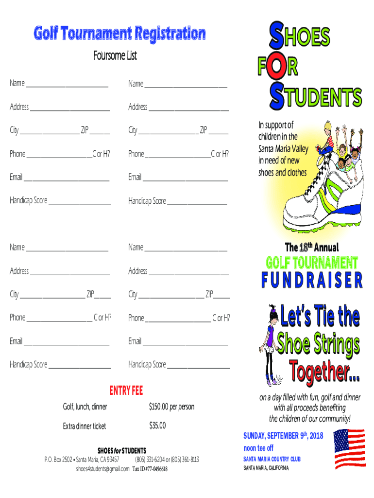 Golf Tournament Registration Foursome List Name Address City ZIP Phone C or H? Phone C or H? Email Handicap Score Name Address City ZIP Phone C or H? Phone C or H? Email Handicap Score ENTRY FEE Golf,