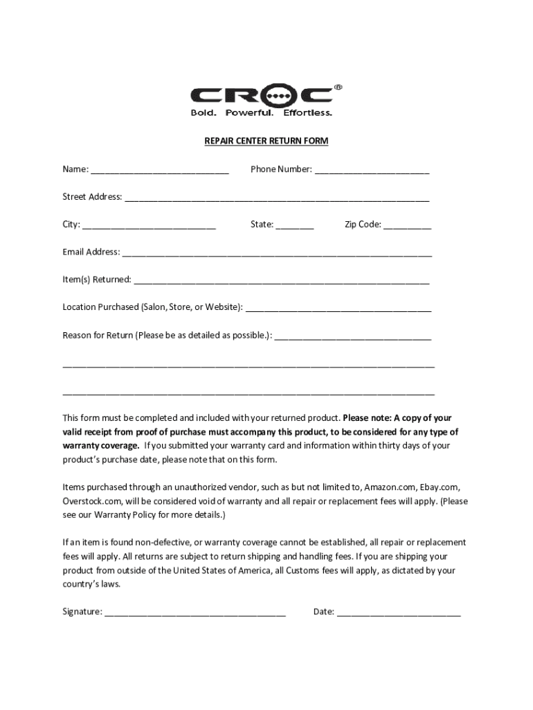 Fill out your repair center return form online with pdfFiller!