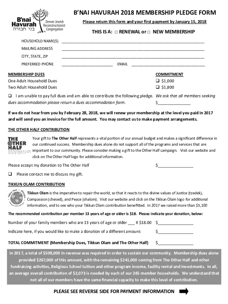 Get the free b'nai havurah 2018 membership pledge form - ShulCloud