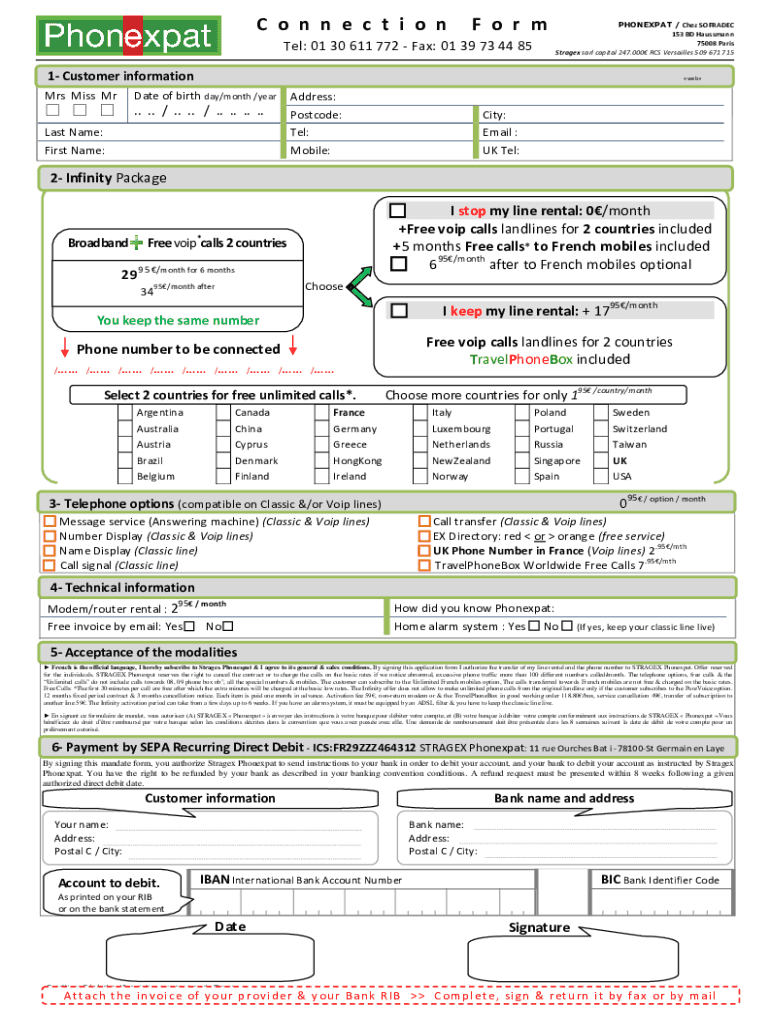 C o n n e c t i o NF o rm Tel: 01 30 611 772 Fax: 01 39 73 44 85PHONEXPAT / Chen COMRADES 153 BD Hauptmann 75008 Paris Stage SARL capital 247,000 RCS Versailles 509 671 7151information 1 Customer