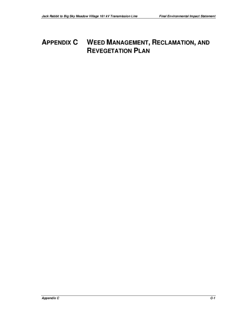 Get the free Appendix C - Draft Weed Management, Reclamation, & Revegetation Plan. Append...