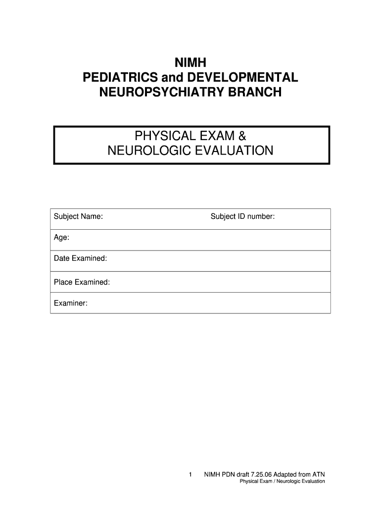 Get the free NIMH Physical Exam and Neurological Evaluaiton10doc - ndar nih