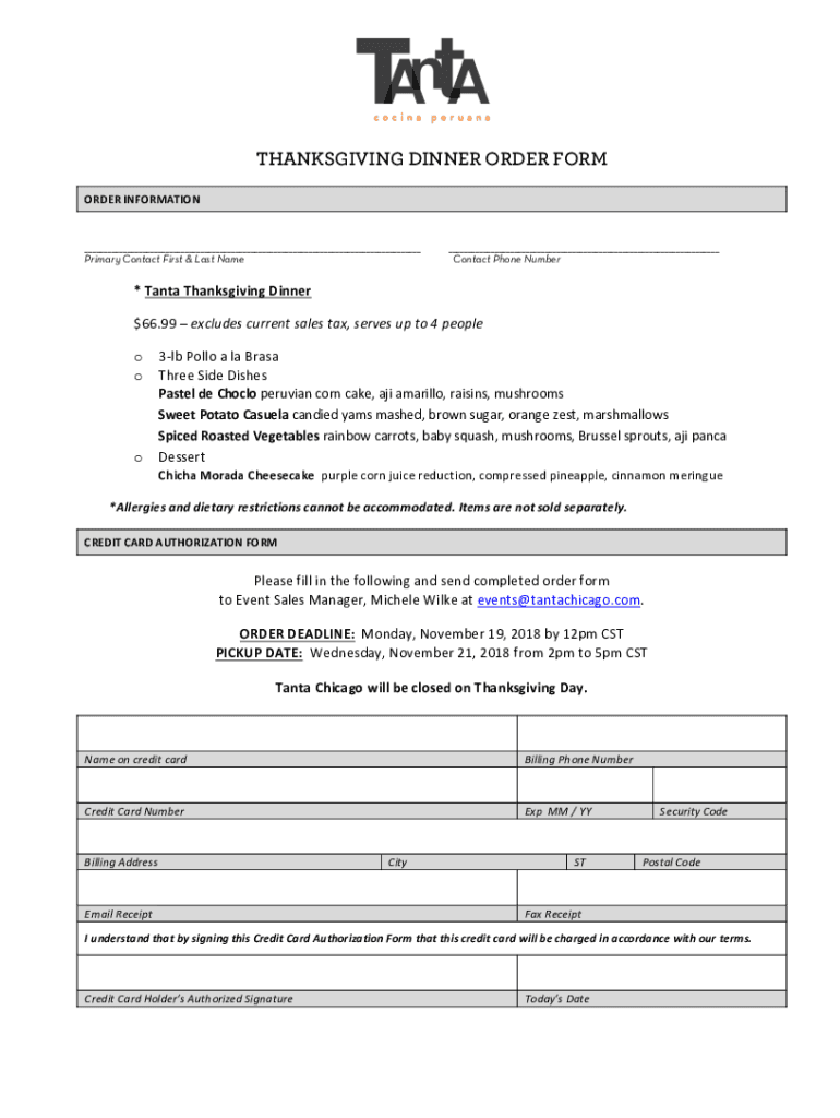 THANKSGIVING DINNER ORDER FORWARDER INFORMATION Primary Contact First & Last Recontact Phone Number* Santa Thanksgiving Dinner$66.99 excludes current sales tax, serves up to 4 people oo3lb Poll à