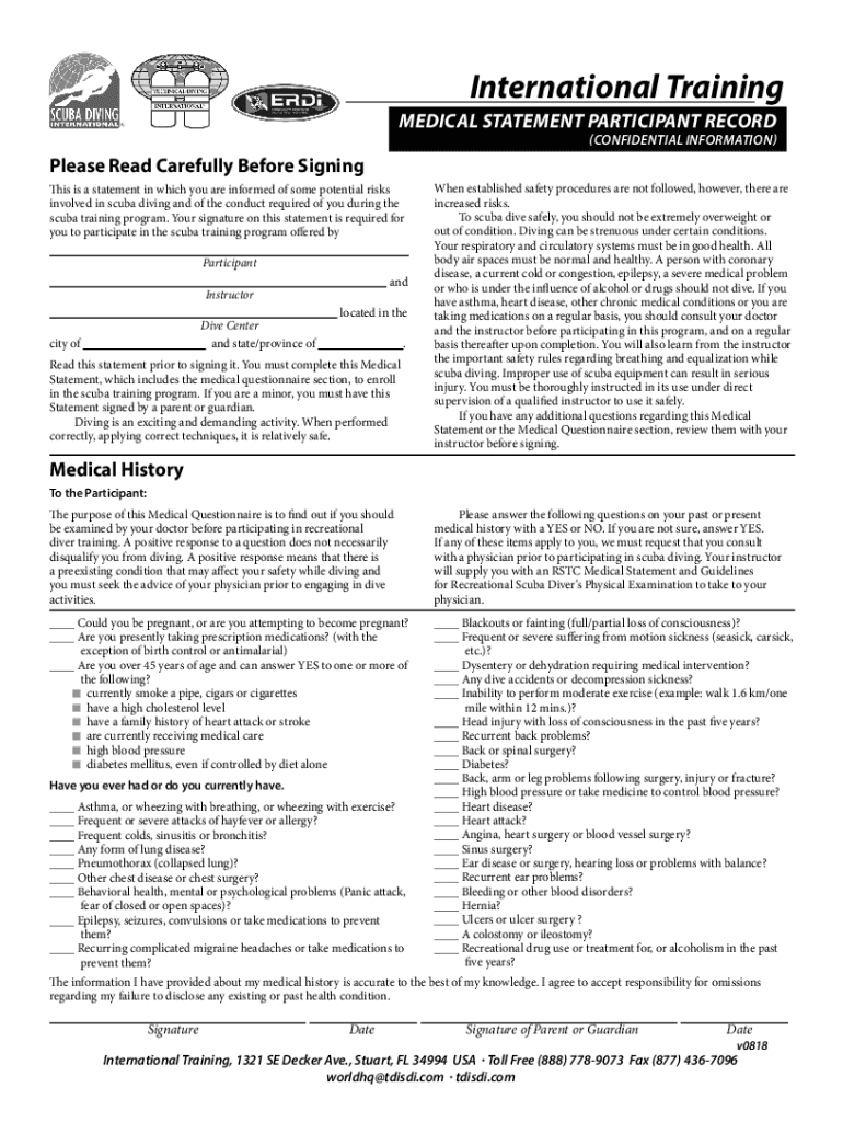 Get the free Technical Diving International Medical Statement
