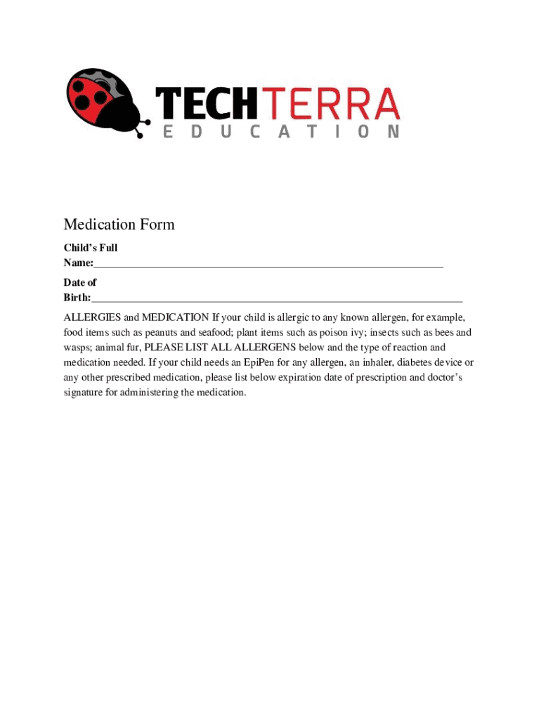 Medication Form Child's Full Name: Date of Birth: ALLERGIES and MEDICATION If your child is allergic to any known allergen, for example, food items such as peanuts and seafood; plant items such as
