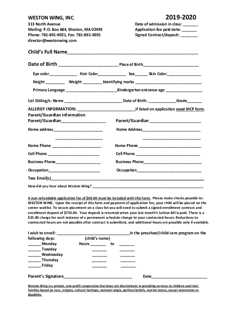 20192020WESTON WING, INC.313 North Avenue Mailing: P.O. Box 684, Weston, MA 02493 Phone: 7818919021, Fax: 7818916591 director bestowing. Combat of admission in class: Application fee paid date: Signed