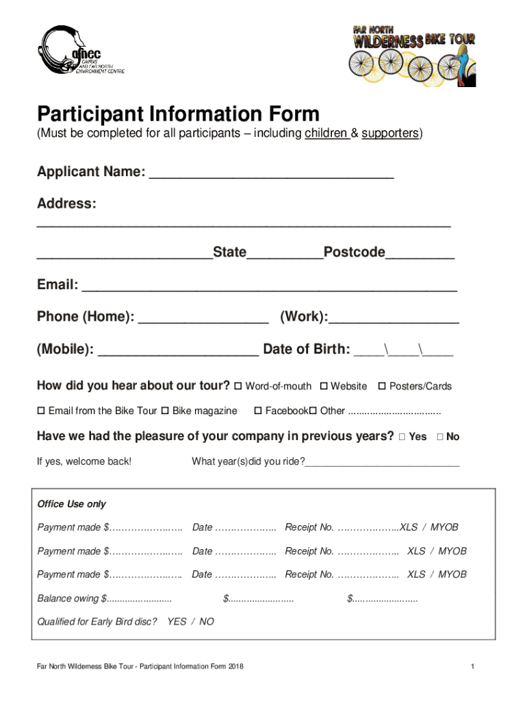 Get the free Participant Information Form - wildernessbiketour.com