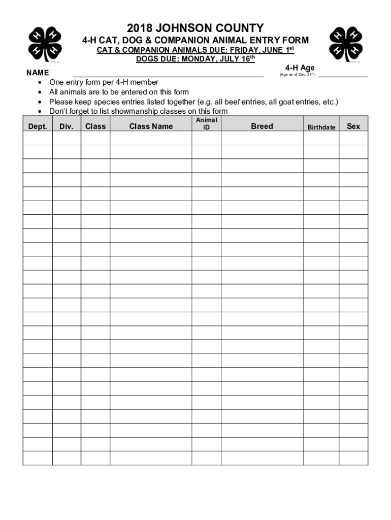 Get the free JC 4-H Cat Dog Companion Animal Entry Form 18